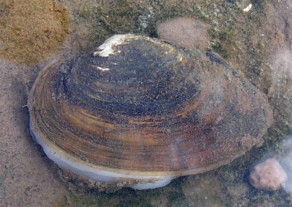 Große Flussmuschel ( Unio tumidus), Elbe bei Coswig, Ende August 2014 (Orginalgröße)